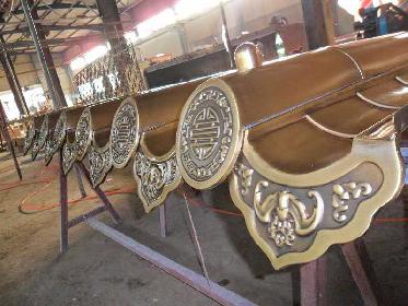 公司所制作的銅工藝品展示出公司藝術的雄健,華美和自然秀穎之風格。公司以新穎的設計方案,精湛的施工技術得到客戶的好評!經過多年的努力拼搏和發展,我公司現已擁有大型剪折及各種配套設備,設備齊全,廠房寬敞。我公司不僅具備承接各種大型工程的能力,同時還能滿足不同的建筑風格。可根據客戶的要求進行制作和加工高檔的銅裝飾品,公司承接廟宇樓臺銅建筑工程、園林古建、城雕環藝、別墅、大廈、酒店賓館銅工程業務。公司生產的產品是工藝美術中絢麗的魂寶。高品位的設計理念和專業的鍛打、焊接、鑄、軋、刻、鑲、沖、鎏金、氧化作舊、腐蝕上色。深得廣大客戶的一致好評和業內人士的認可。